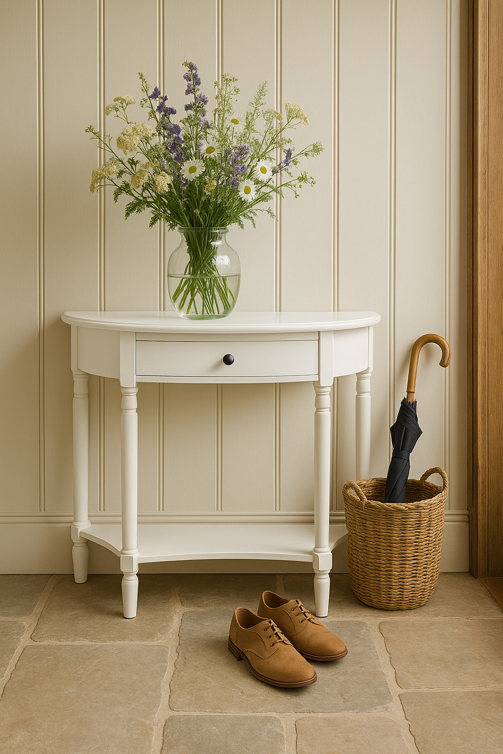 Breathe life into your home with a space that feels fresh, bright, and beautifully balanced. The white console adds a crisp, modern touch, reflecting natural light to open up the room, while soft textures and warm gold details bring depth and warmth. This look blends elegance with ease, creating a home that feels serene, welcoming.