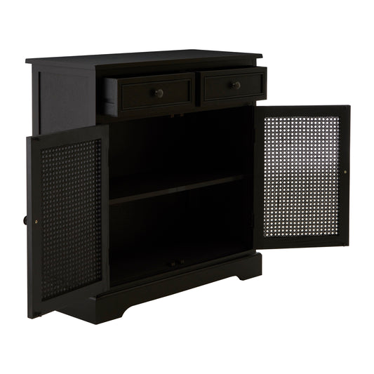Ardela & Co Celso Black Sideboard with Two Rattan Doors