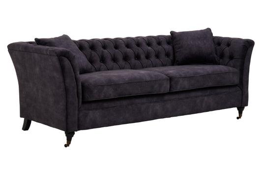 Ardela & Co Sienna Three Seat Dark Grey Chesterfield Velvet Sofa